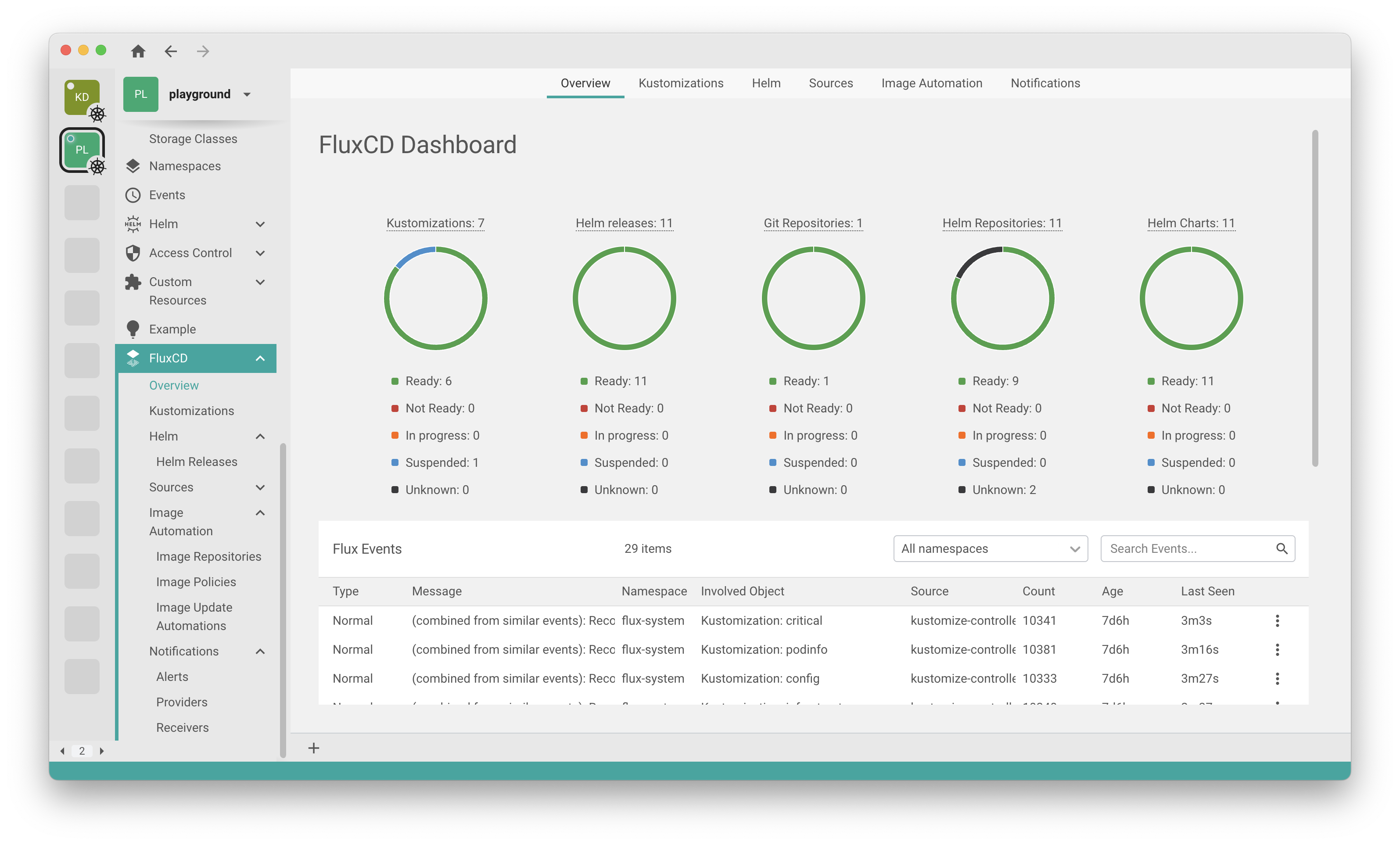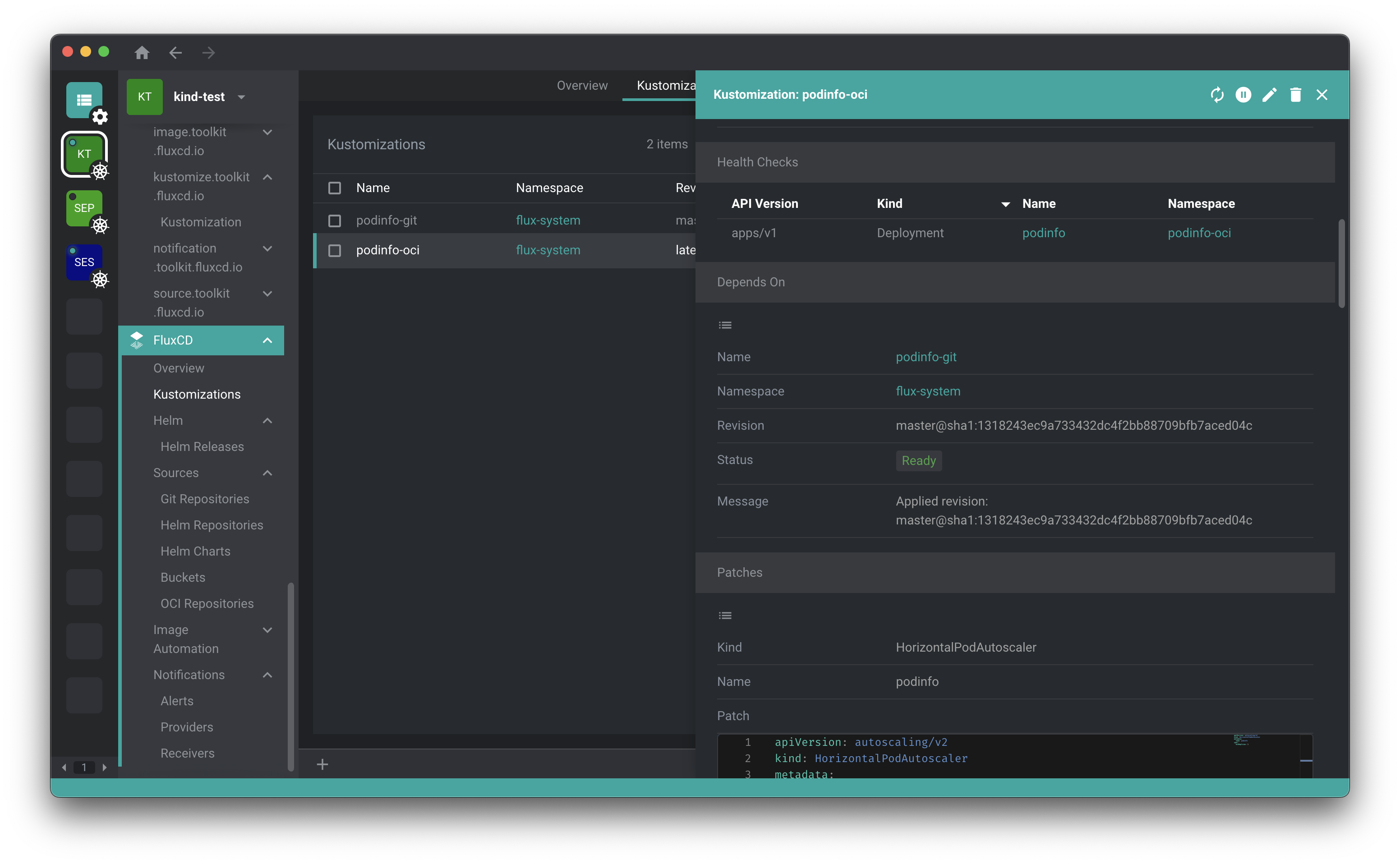 gimlet-io/capacitorCapacitor is a general purpose Flux UI to debug Flux and application issues. Apply these manifests to install it.
